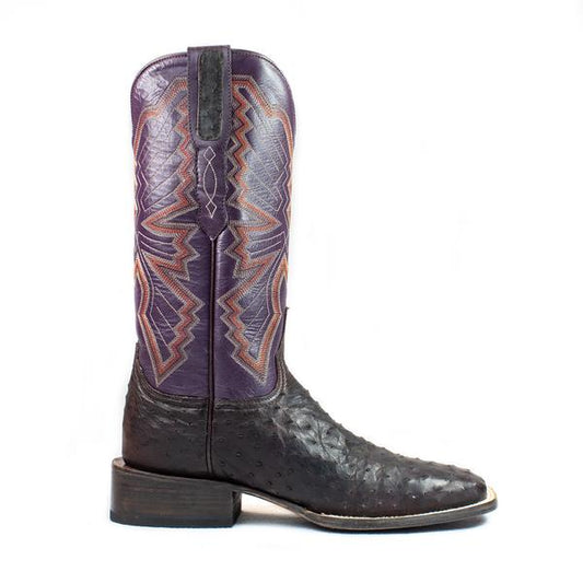 Men's Azulado Cowboy Boots: Jake - Full Quill Ostrich - Distressed Chocolate