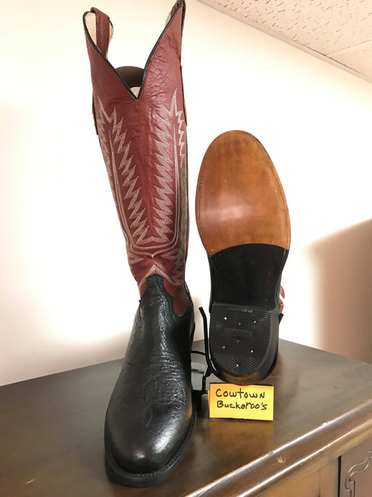 Men's Buckaroo Cowboy Boots: blood red top with black vamp